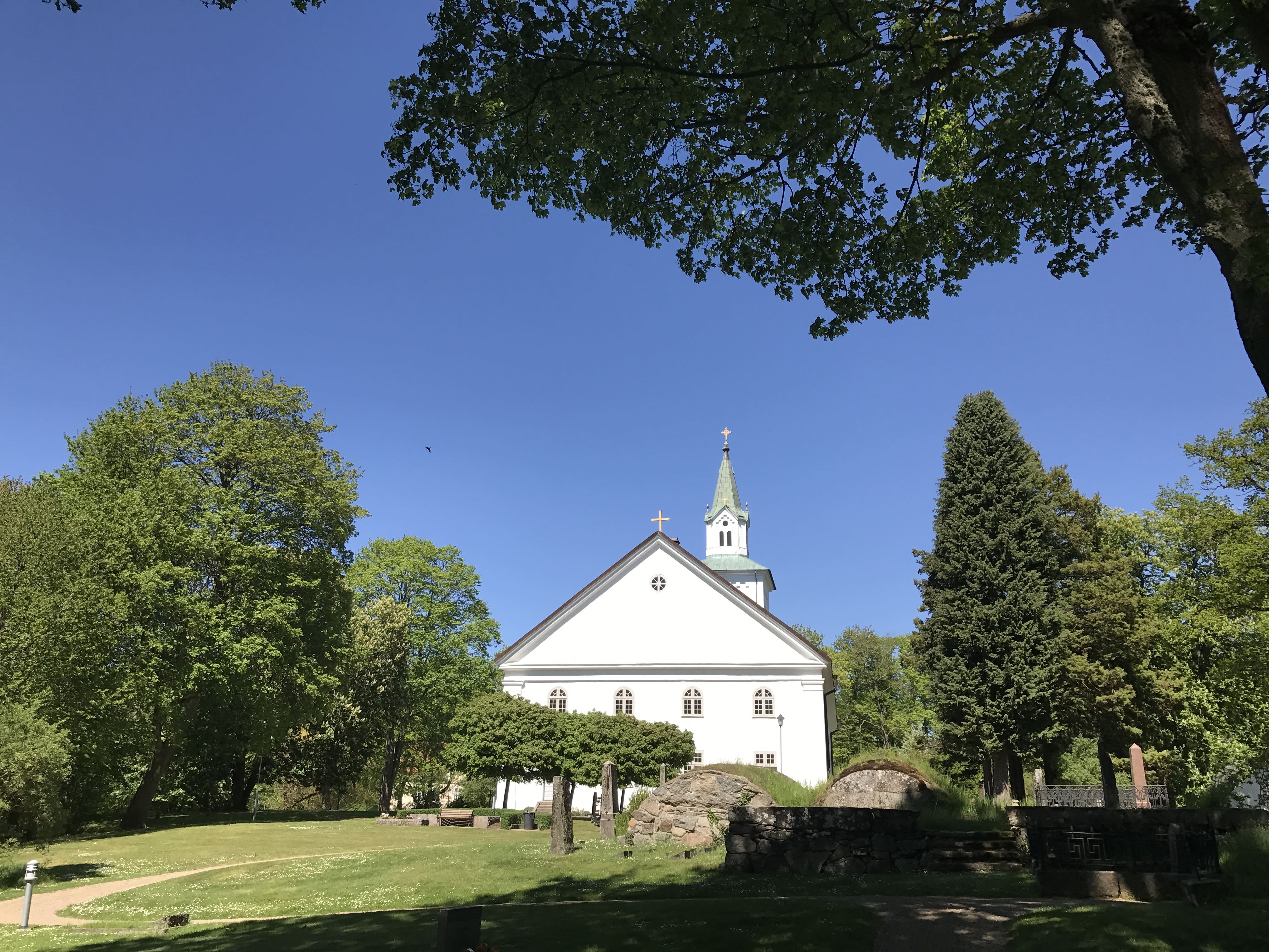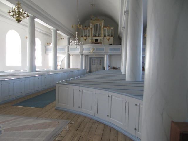 It looks like a cathedral with its high arched ceiling and heavy columns. The interior was painted in the 1970s in its present grey-blue/light-blue colours. Look especially for the stone-cairn graves where Fredrik Henrik af Chapman and Anders af Håkansson are buried. Their stones are decorated with carvings of their families' coats of arms; af Chapman was a shipbuilder and af Håkansson was a county governor and member of Parliament.