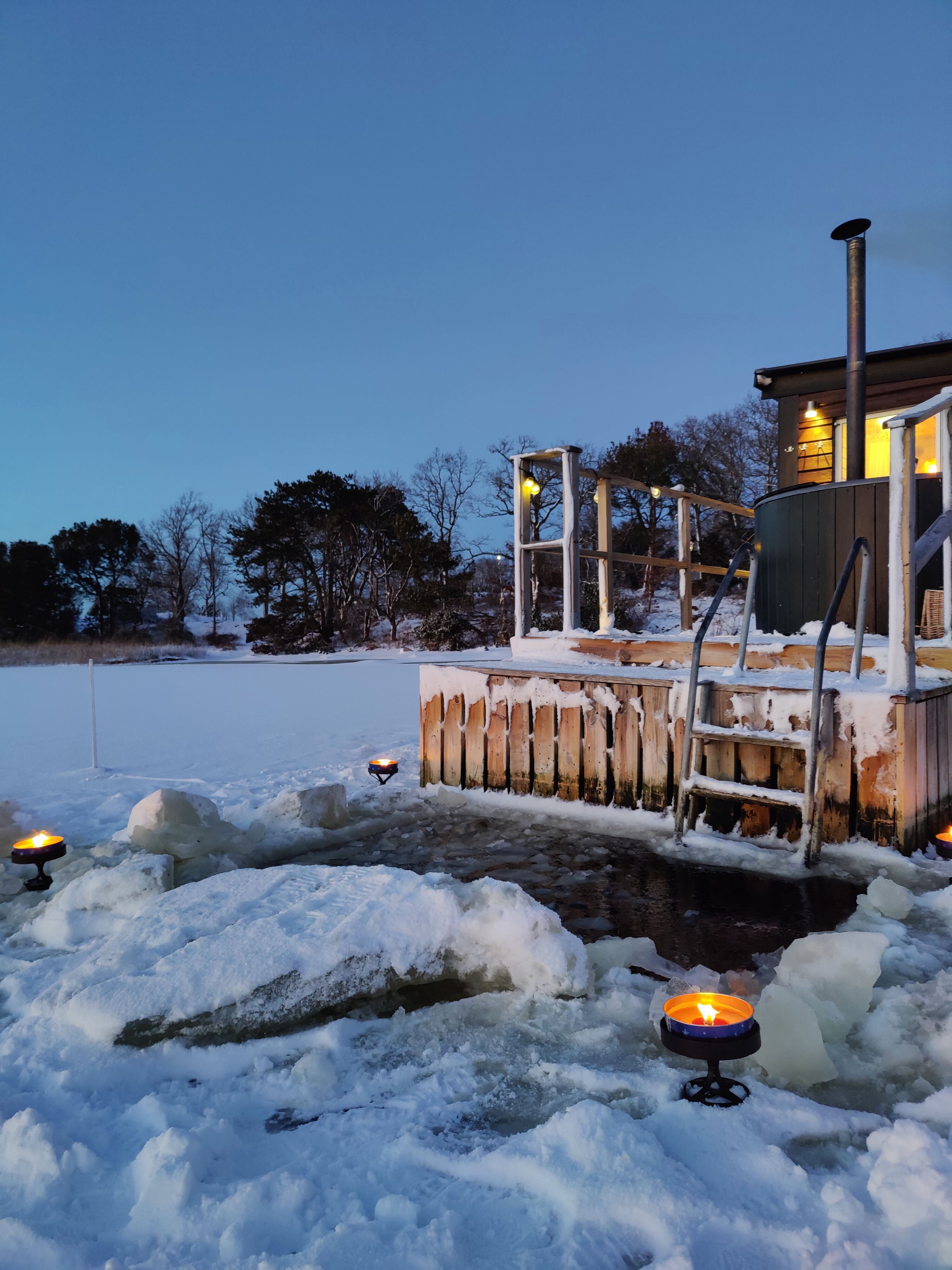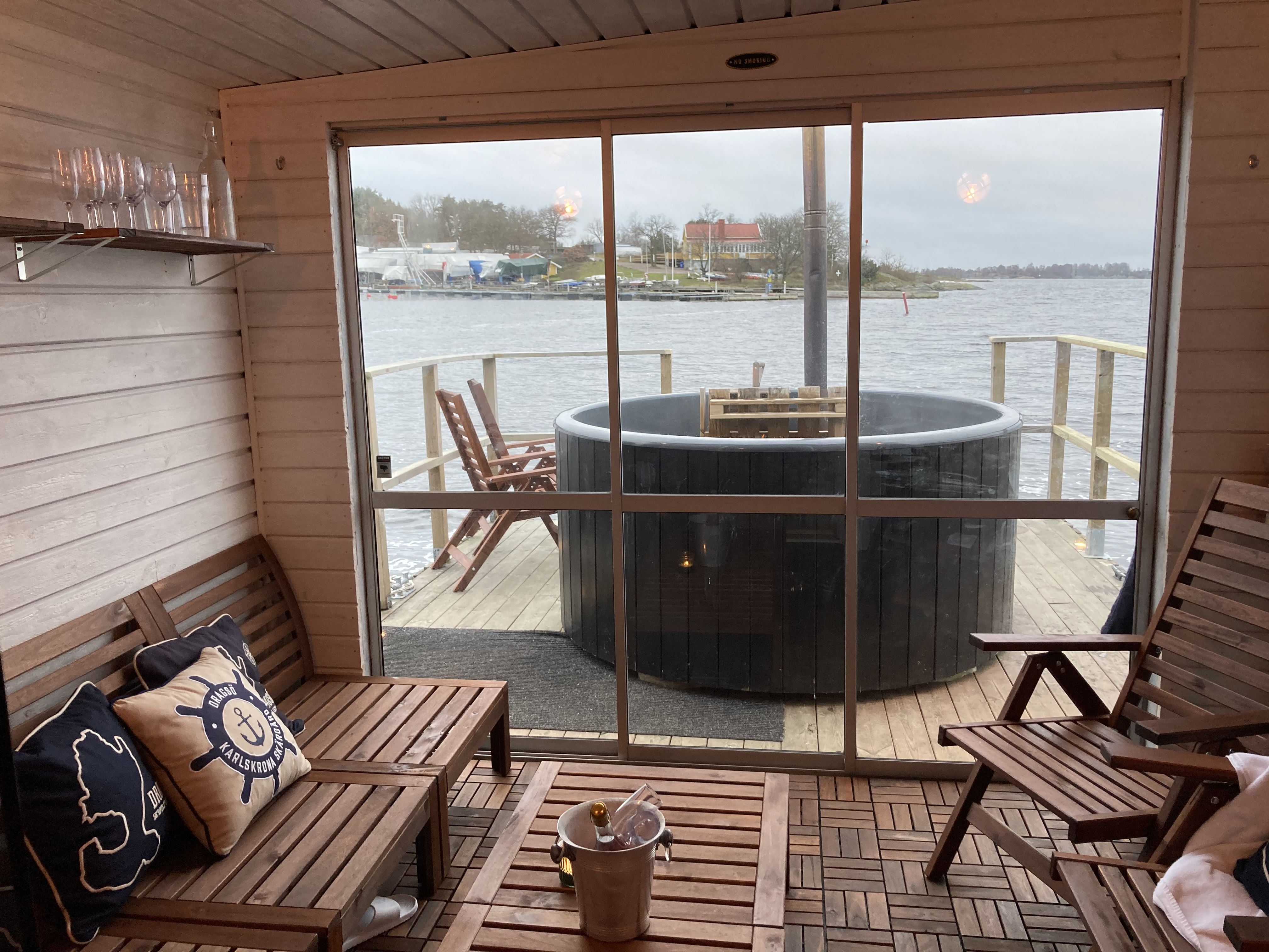 The raft was built with the idea that everyone should be able to relax at the same time whether you enjoy a sauna or not. Therefore, the fleet was built with three different modules - Hot Tub - Lounge - Sauna. The sea raft is unique with its lounge which is the hub of the raft. With the help of the sauna, the lounge is heated to a comfortable temperature. Of course you have a fantastic view of the Karlskronas archipelago!