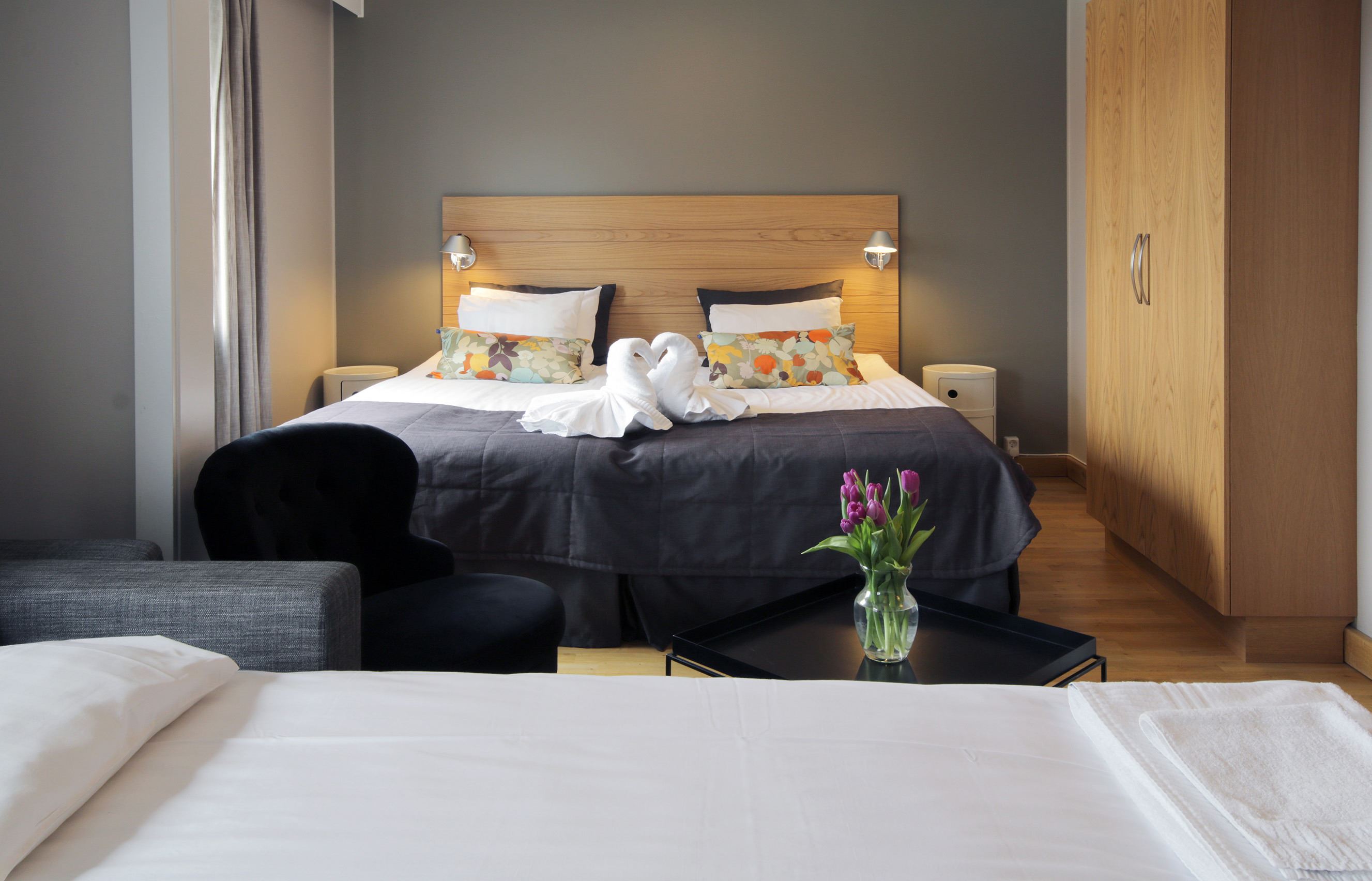 The hotel is owned and run by Carin and Jörgen Wahlqvist. There are 41 hotel rooms divided on levels 3-5 in the building.