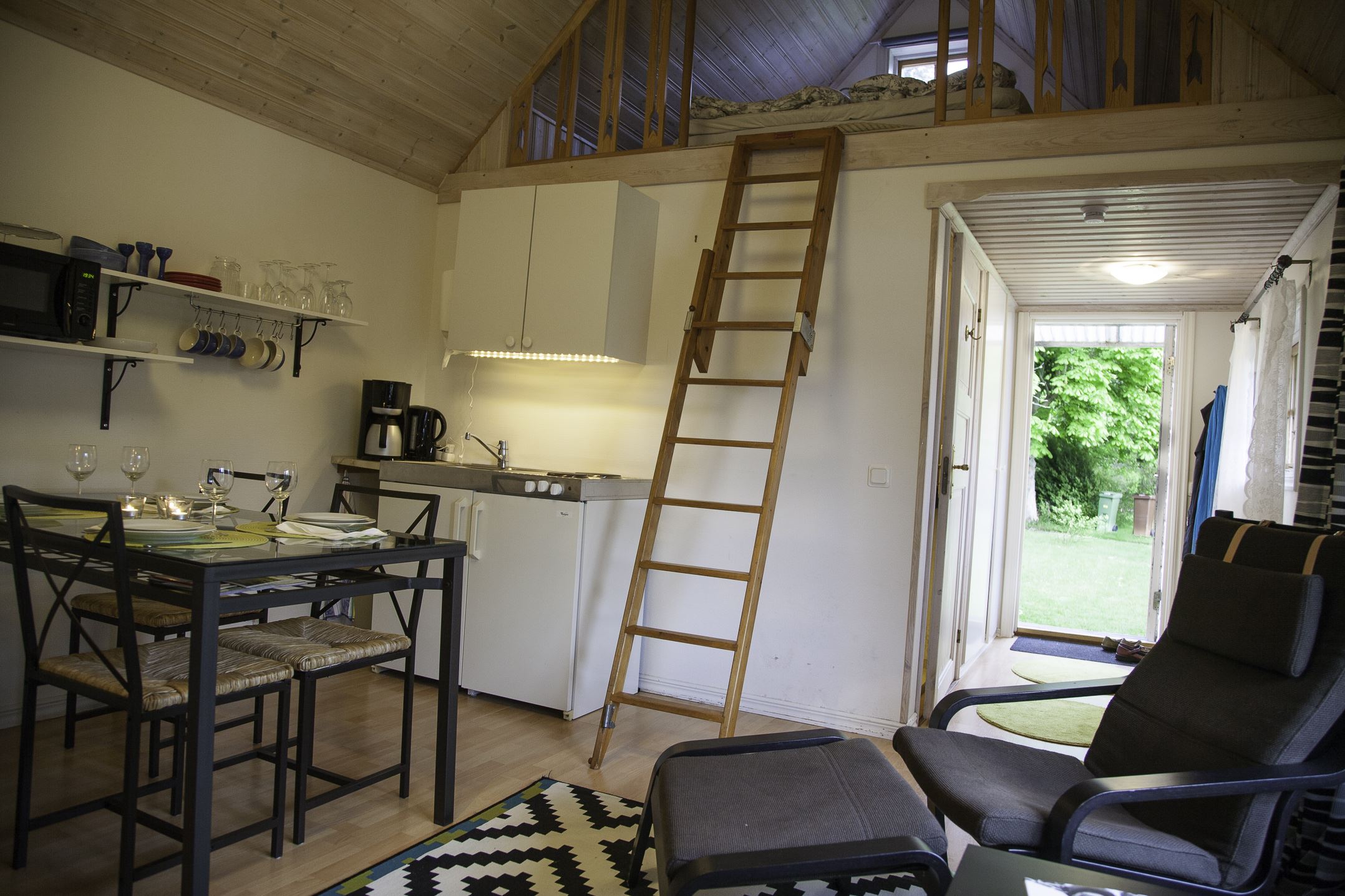 Their accommodations are in the garden, with nature as your neighbor. The silence, the calm, the sea eagle soaring in the sky, the chorus of the natterjack toad, or the nightingale and cuckoo—all part of life in the countryside just outside your door. You might hear seabirds from the coast or deer warning of danger in the night. To see the different accommodations, visit our website.
