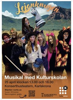 The audience will get to see everything the Arts School has to offer, with singing, dancing, theater, visual arts, design, and film all woven together into the musical “Lejonknugen.” April 25, with two performances at 1:00 p.m. and 4:00 p.m.