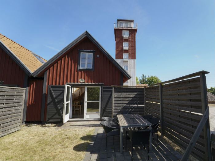 In the pilot tower there are five rooms, one on each floor. The two bottom rooms have beds fixed to the wall (like bunks on a ship) and the romms on floor three to five have a double bed and a sofa/sitting chair bed. All the rooms have a bathroom with a shower and windows in all four directions. The rooms are named after the lighthouse you can see from that floor: Godnatt, Dockan. Utklippan, Angöringen and Utlängan. On the top floor there is a lookout room named Utkiken