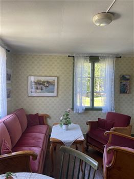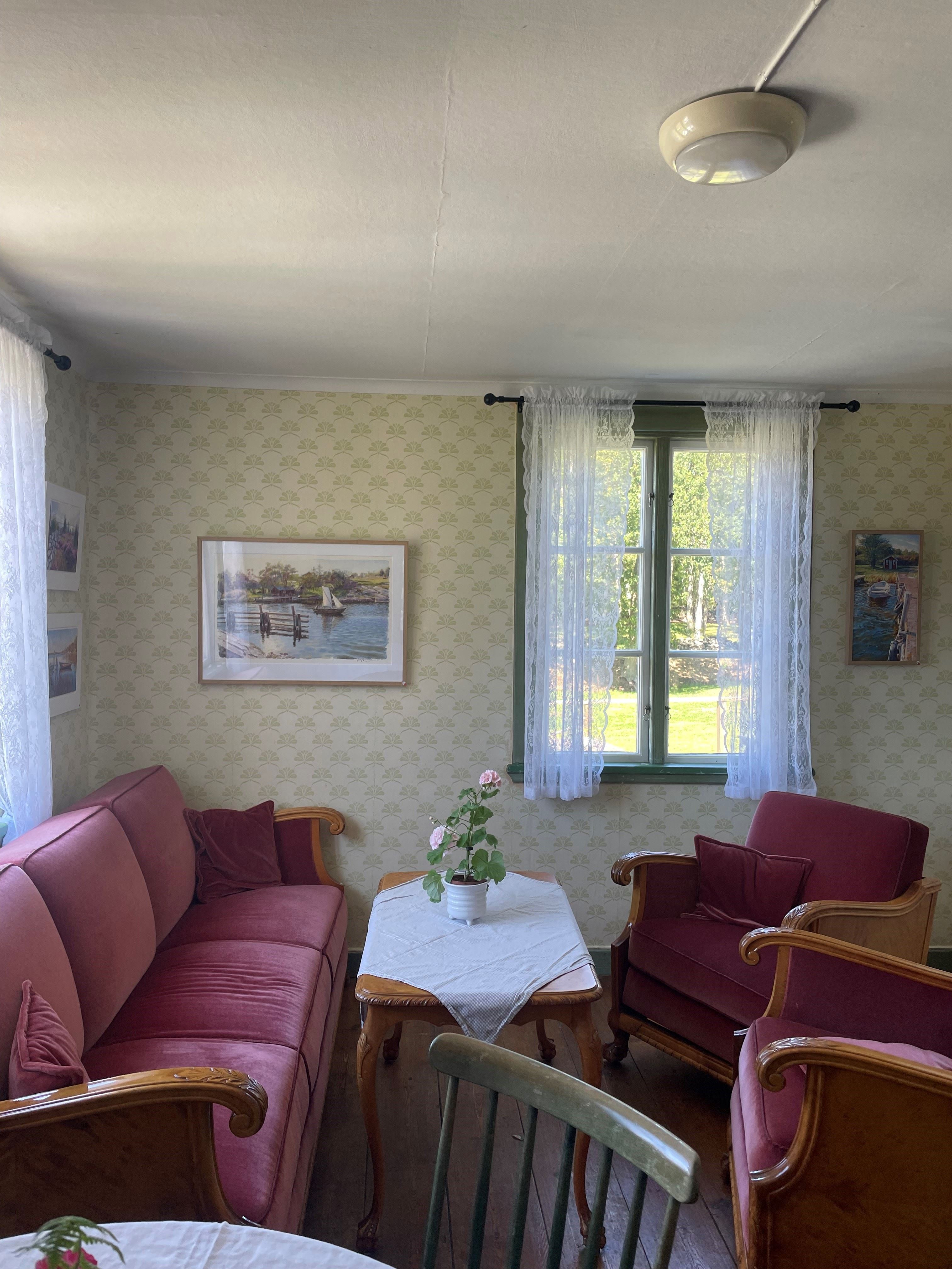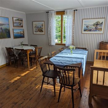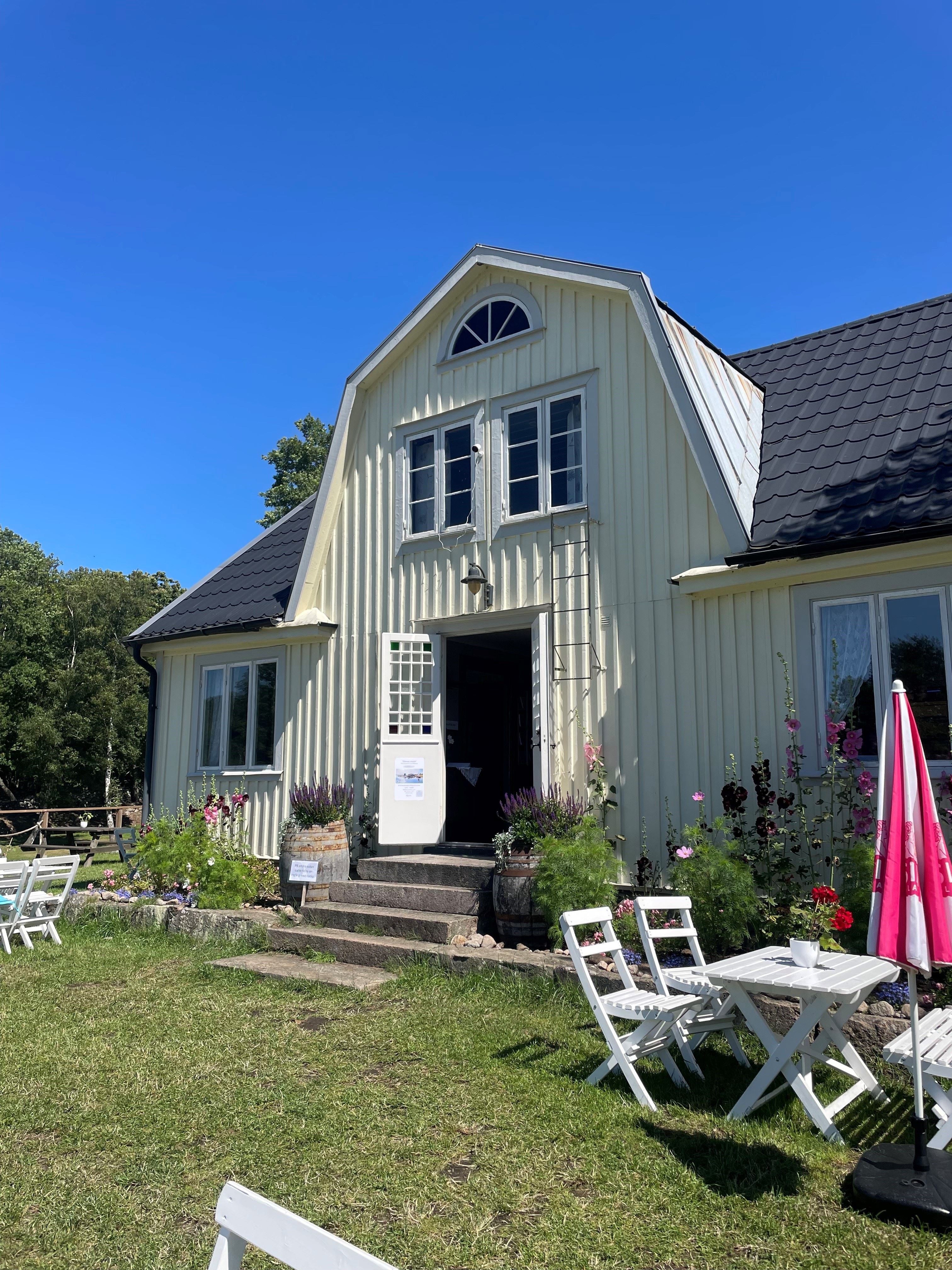 I det gamla boningshuset, där det tidigare varit vandrarhem har man gjort om för café verksamhet och konst utställning.