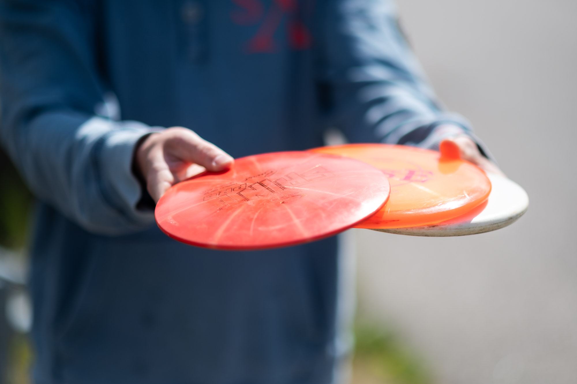 • Golfdiscar ser ut som frisbees men de är annorlunda formade för att flyga längre och mer stabilt genom luften.