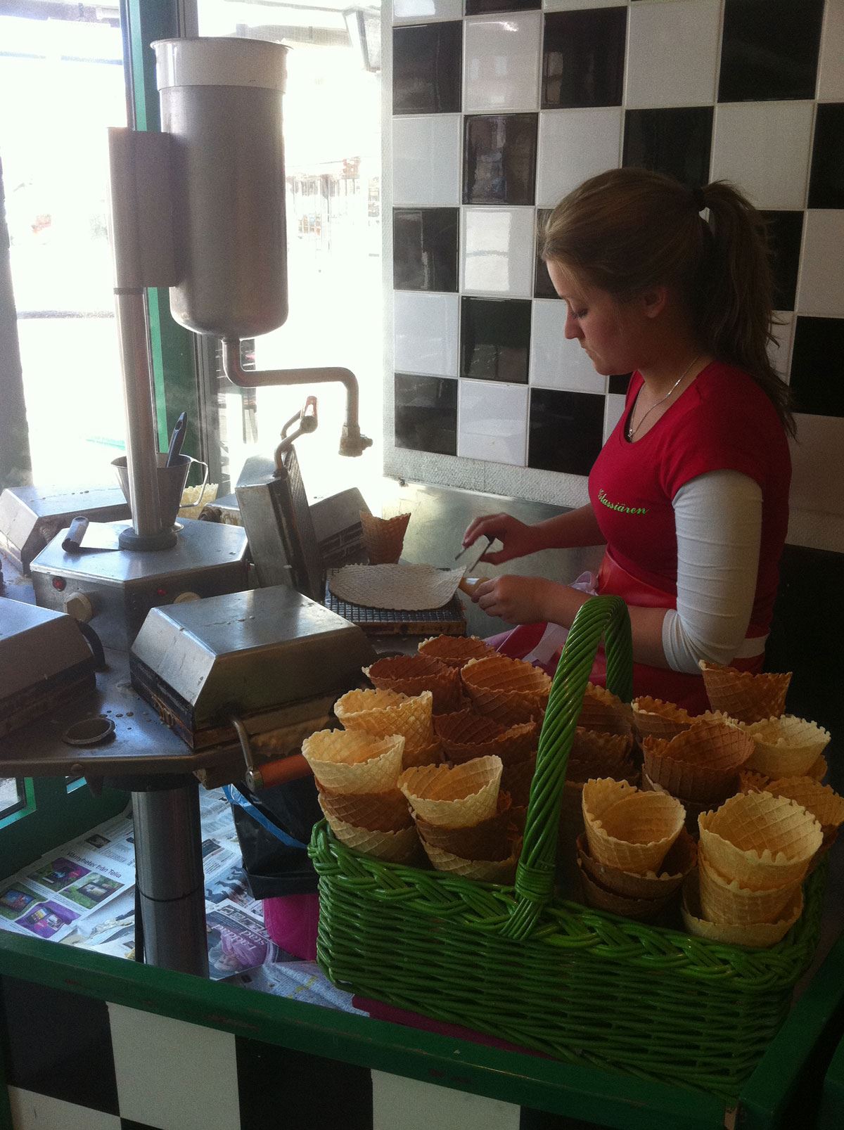 Populär glassbar mitt i centrala Karlskrona vid Stortorget. På menyn finns både traditionella och mer ovanliga sorter. Stora glassar utlovas & ett besök här bör man inte missa om man älskar glass. De egentillverkade våfflorna sprider en ljuvlig doft över Karlskronas Stortorg då de "våfflas" i glassbutiken.