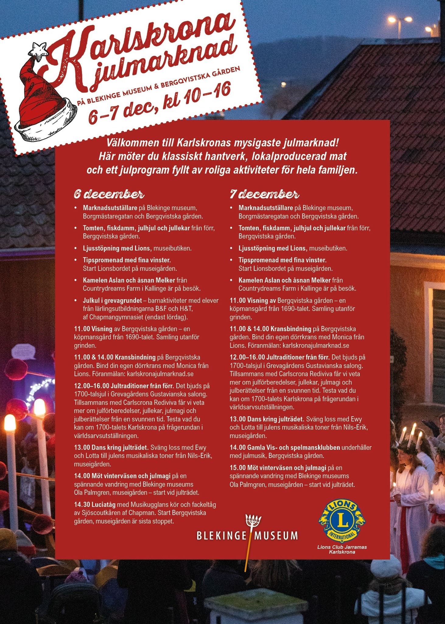 Julmarknaden arrangeras av Lions Jarramas och Blekinge Museum.