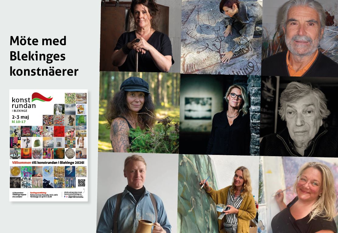 Under helgen 2–3 maj kl. 10.00–17.00 öppnar yrkesverksamma konstnärer runt om i Blekinge sina ateljéer och utställningar för allmänheten. Besökare får möjlighet att uppleva en bredd av konstnärliga uttryck – från måleri, grafik och teckning till glas, keramik, textil, skulptur och digital konst.