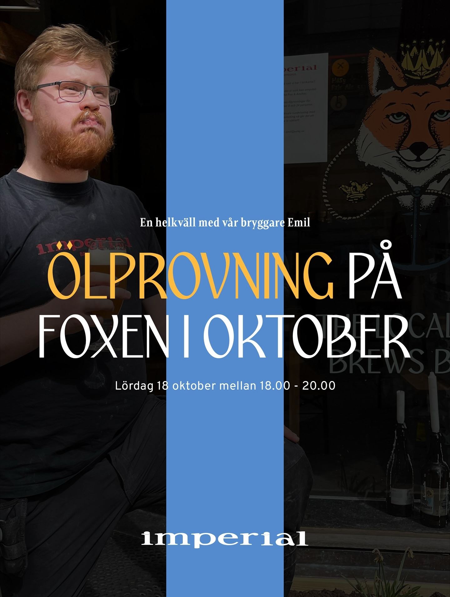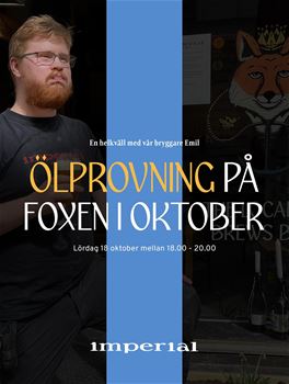 Ölprovning med Imperial Brygghus – med bryggare Emil erbjuds lördagen 18 okrober kl. 18.00.