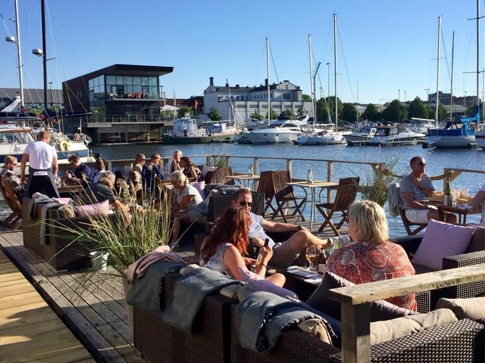 En genuin sjökrog där ni kan äta en välkomponerad trerätters, enkelt avnjuta en låda med räkor, eller bara ta ett glas på den härliga uteservering, omsluten av vatten.